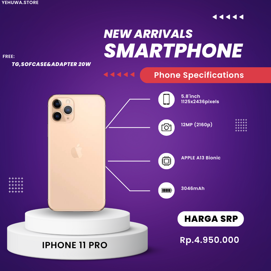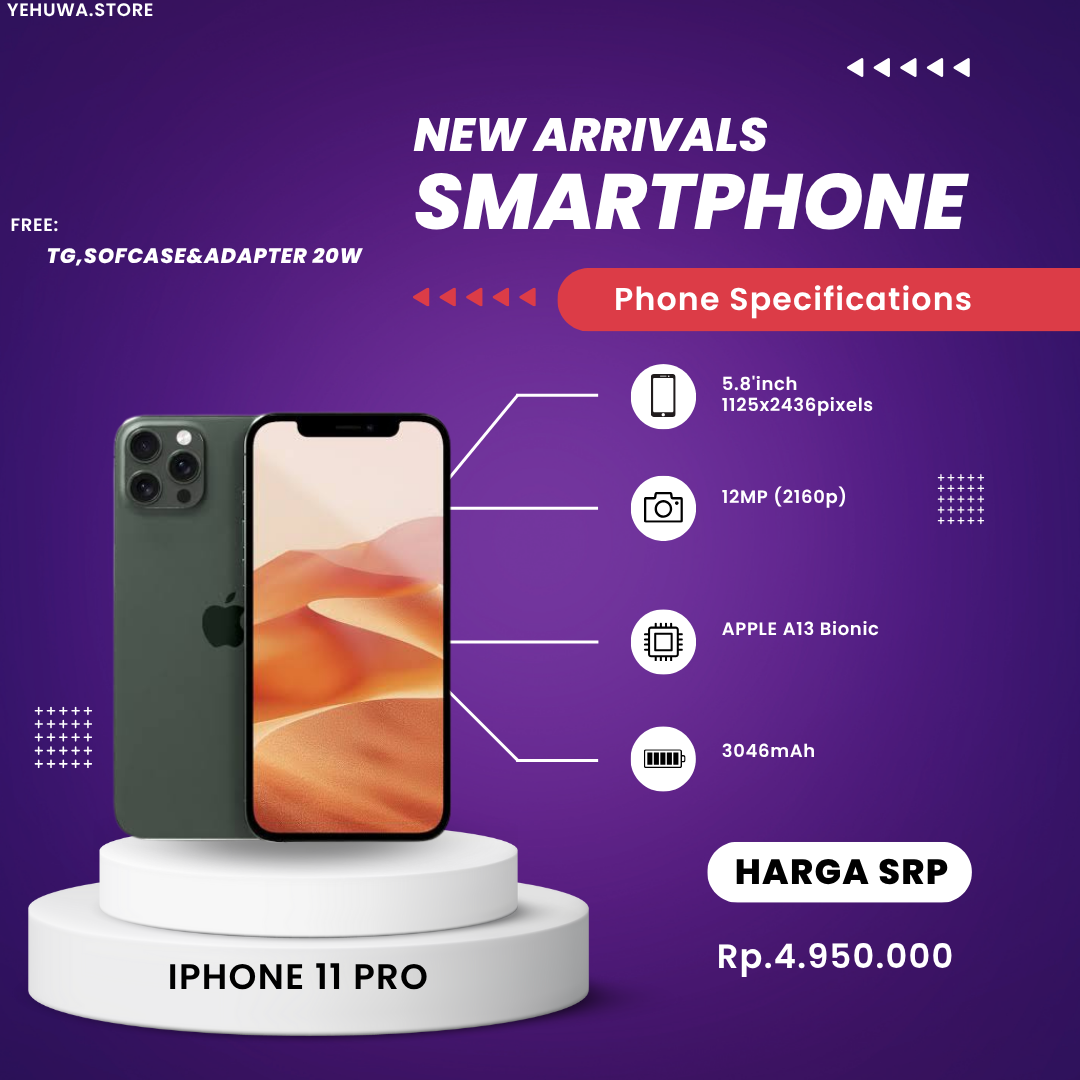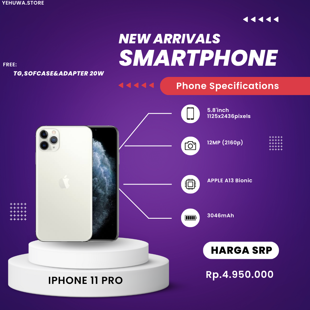 IPHONE 11 PRO IBOX 256GB ORIGINAL FREE TG,SOFCASE DAN ADAPTER 20W