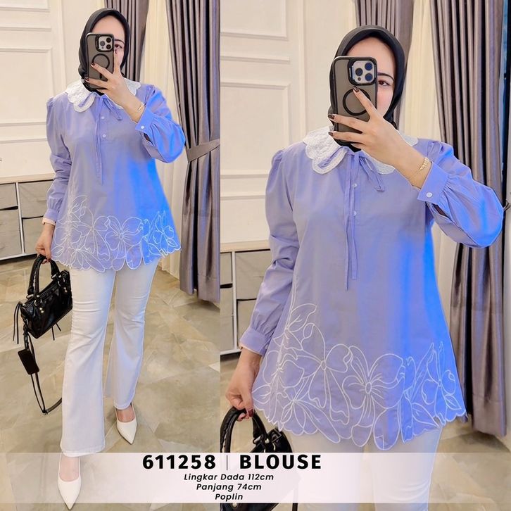 (TERLARIS)EXTU HERITAGE - AZURA Blouse Motif Salur Elegan – Busui Friendly - 611257,611258