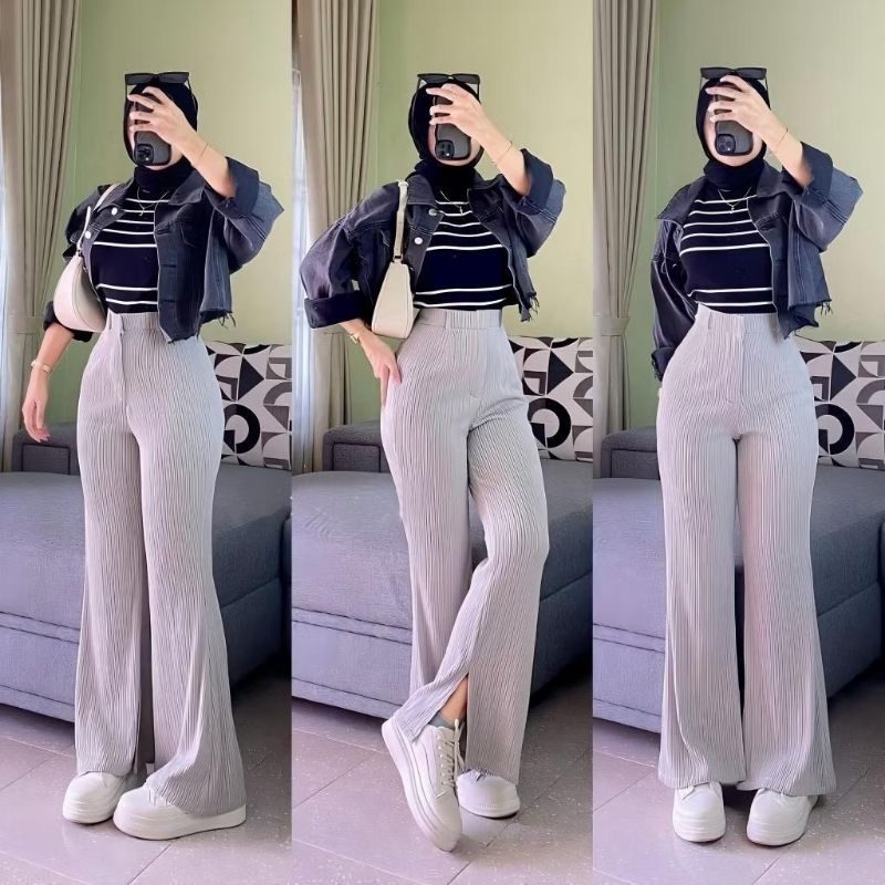 Celana Knit Cutbray Wanita Highwaist Celana Kulot Premium Belah Samping