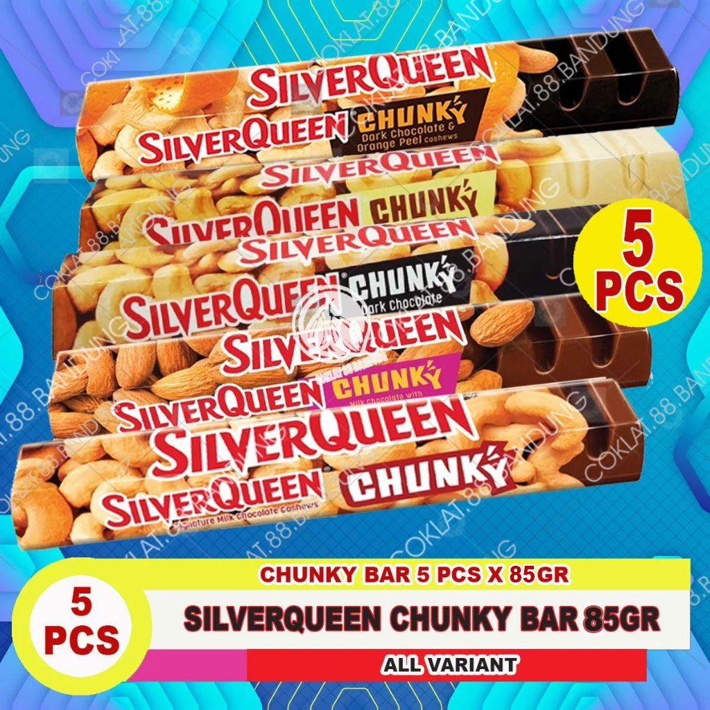 DM - SilverQueen Chunky Bar 85gr Isi 5 PCS Mix Rasa Mede Almond Cashew White Dark Orange Coklat