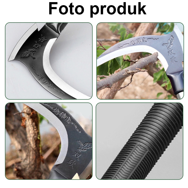 Sabit Arit Rumput Szgzd 40 60 80cm Kapak Ganda Baja Asli Super Tajam Untuk Ranting Dan Padi