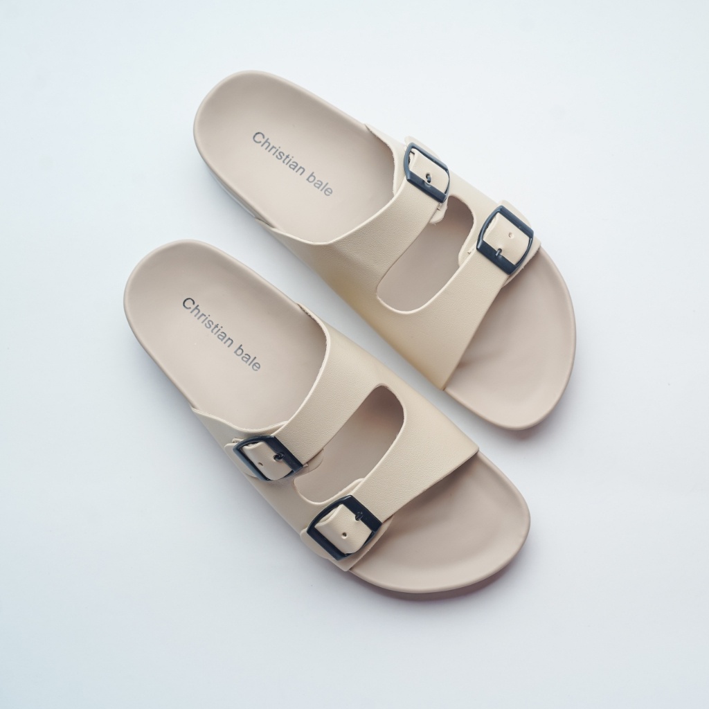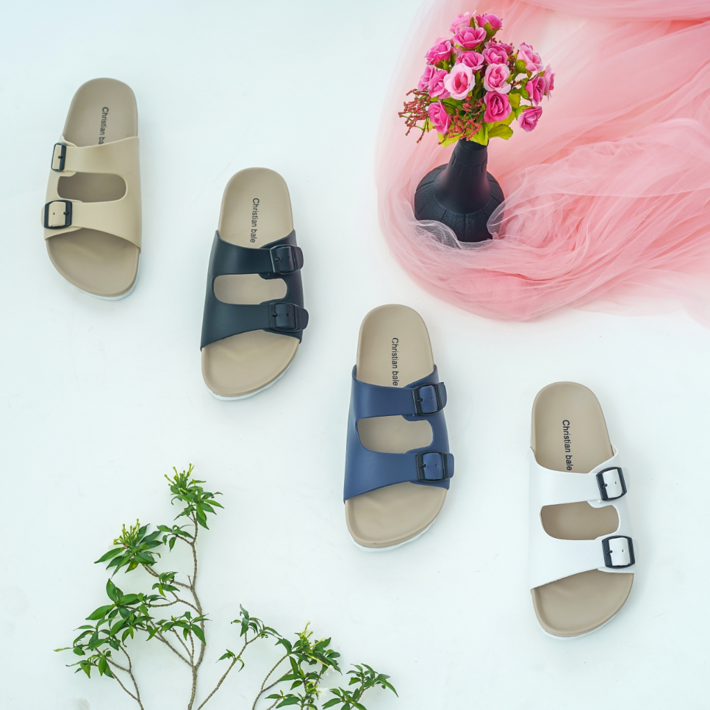 Christian Bale JENNIFER Sandal Slop Wanita Kekinian Sendal Flat Slip On Casual Cewek Gesper Terbaru