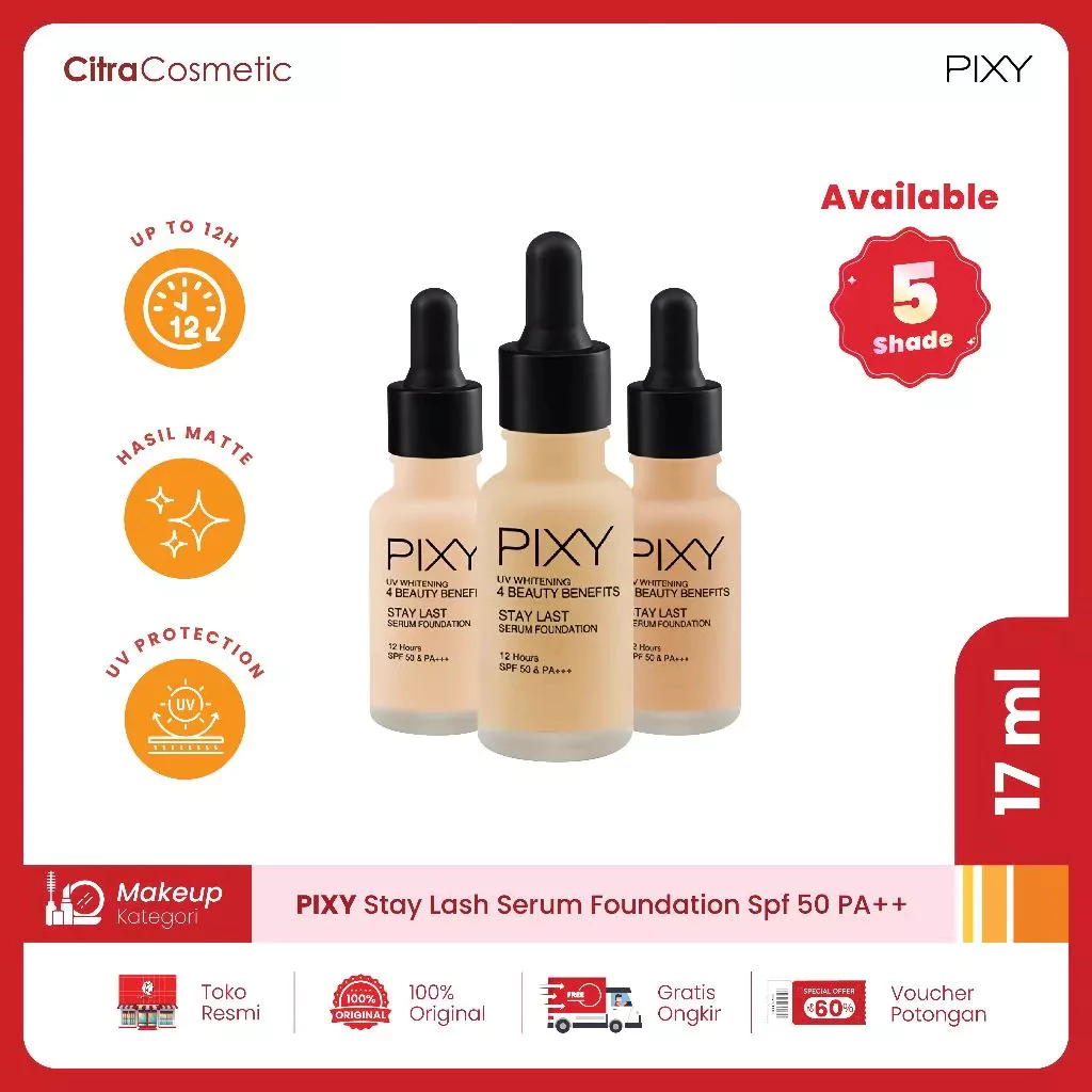 ❤️CitraCosmetic❤️ Pixy Stay Lash Serum Foundation Spf 50 PA++ Series