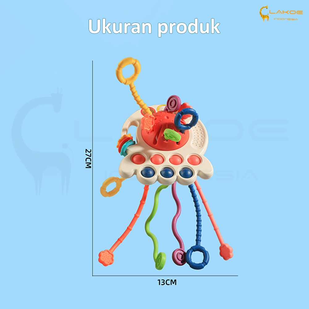 Mainan Gigitan Bayi 4 in 1Pop It Teether Bayi Tarik Panjang Mainan Gigitan/Mainan Edukasi Bayi Bahan Silikon bpa free