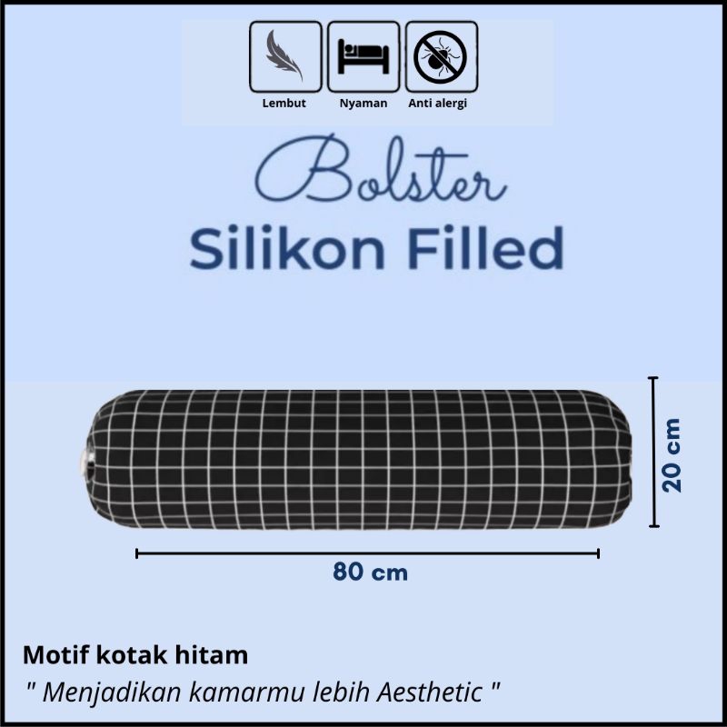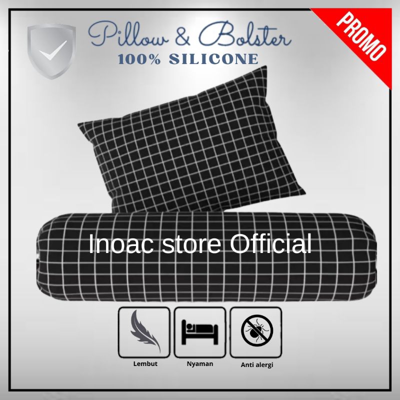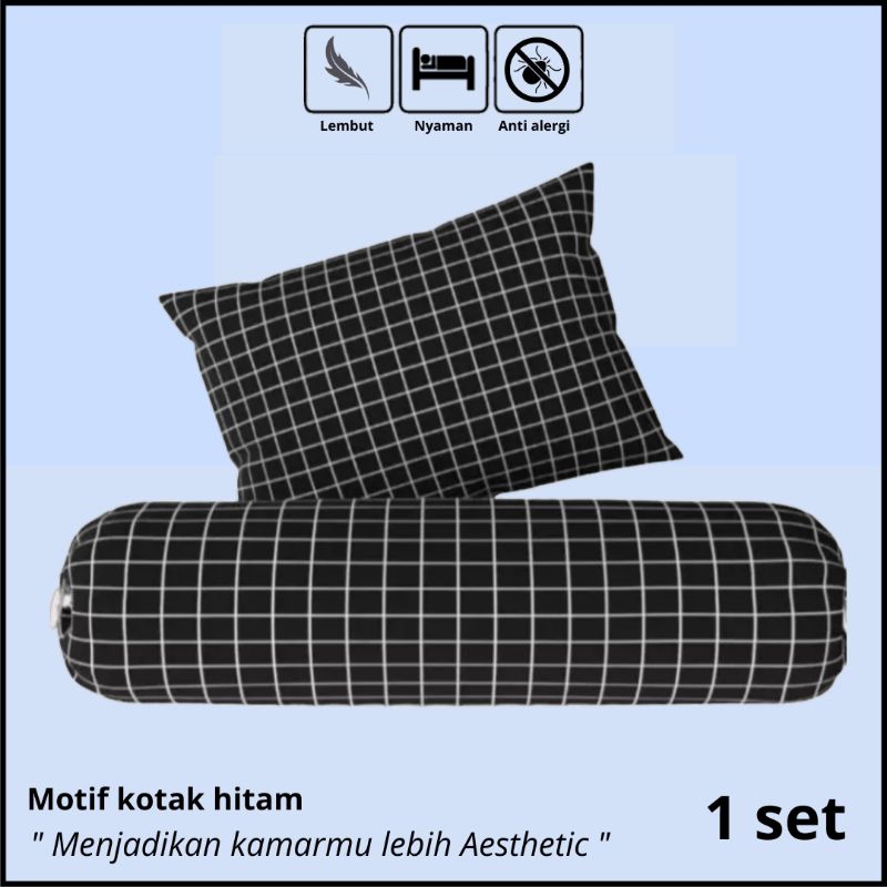 PROMOPaket 1 set Bantal Guling tidur Hotel Silikon Grade A Motif Kotak hitam