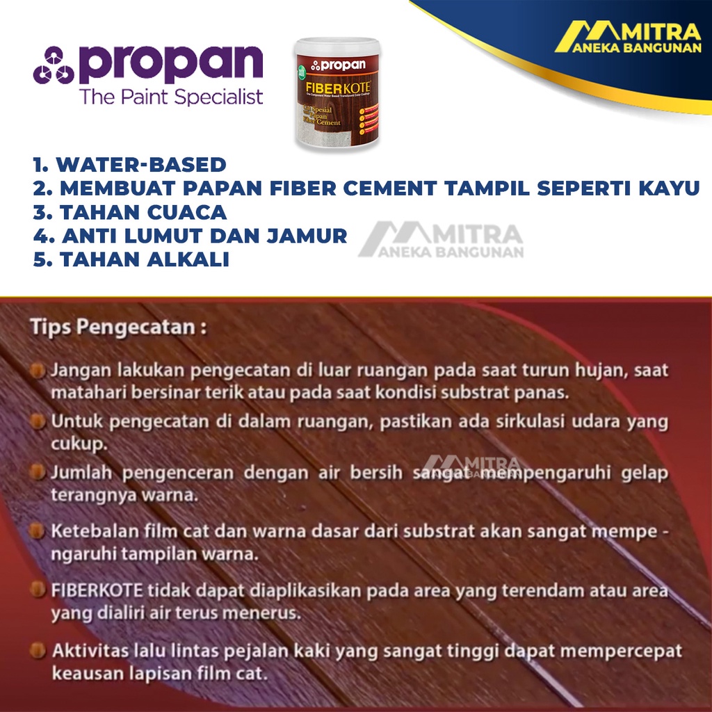 Cat Fiberkote Papan Semen Warna Kayu 1 Kg Propan