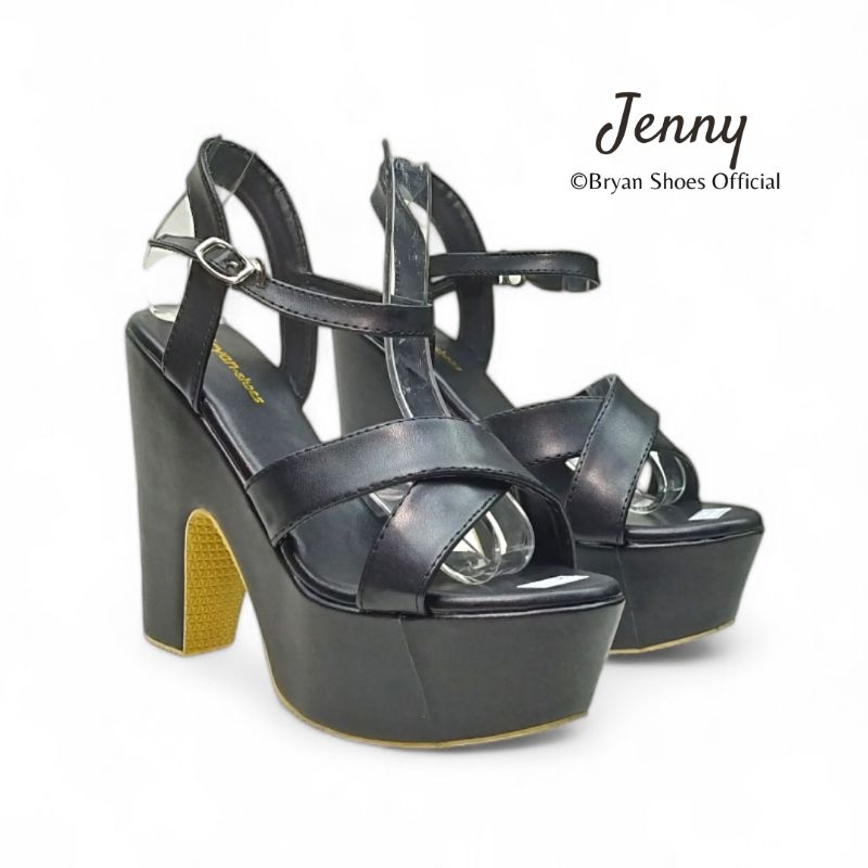 Jenny High Heels Platform 12cm Sandal Hak Tinggi Tebal Sepatu Wanita Hitam Putih Merah Krem Moka