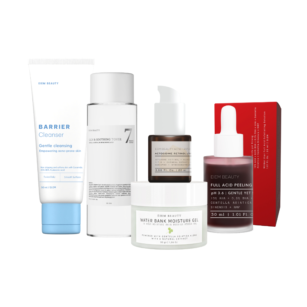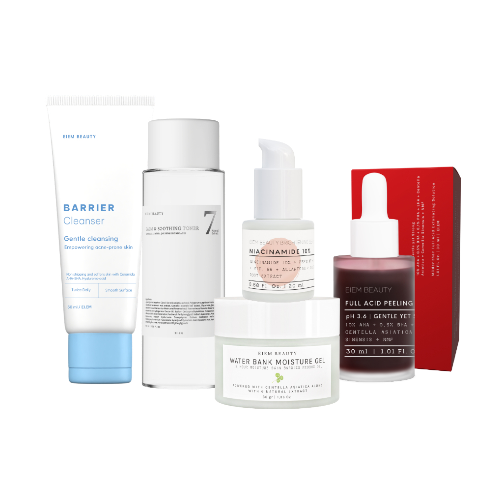 Eiem Beauty 5pcs Set: Facial Wash + Toner + Water Bank Moisturizer 30gr + Acne Hydration Brightening Serum + Peeling Serum