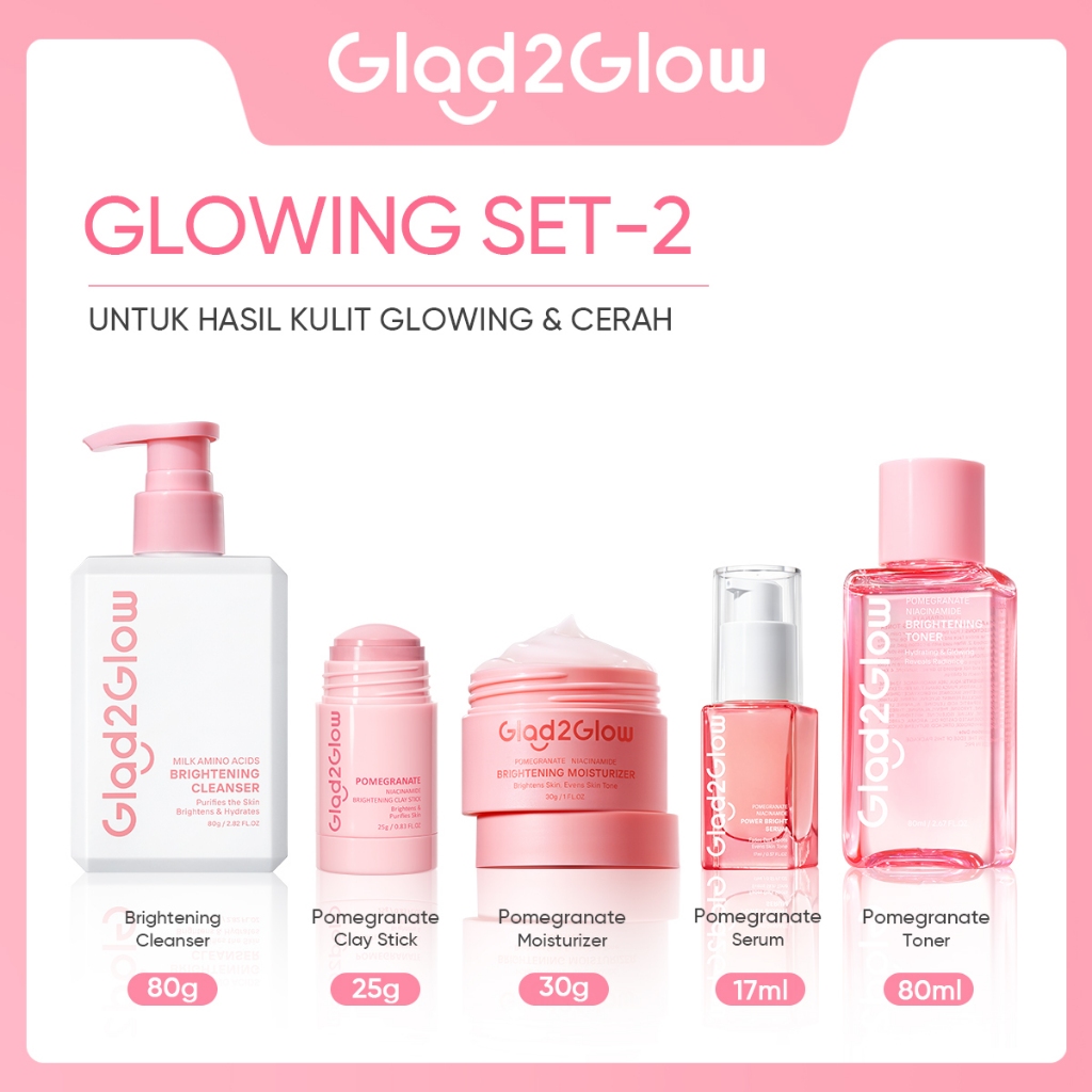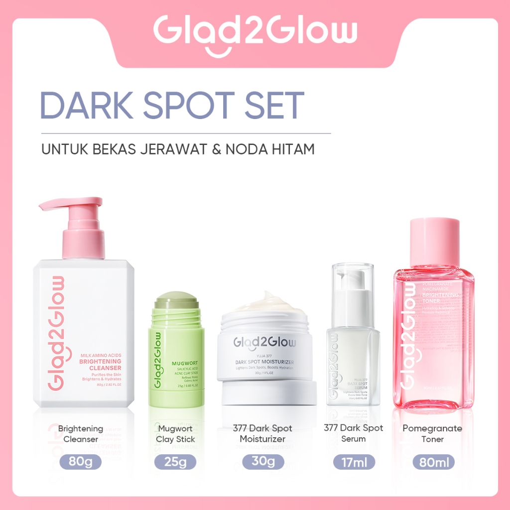 SPECIAL BUNDLE 5in1 Glad2Glow 5pcs Paket Skincare Moisturizer Serum Face Wash Clay Mask Stick-Toner-Acne Kit Glowing Kit Dark Spot g2glow official store