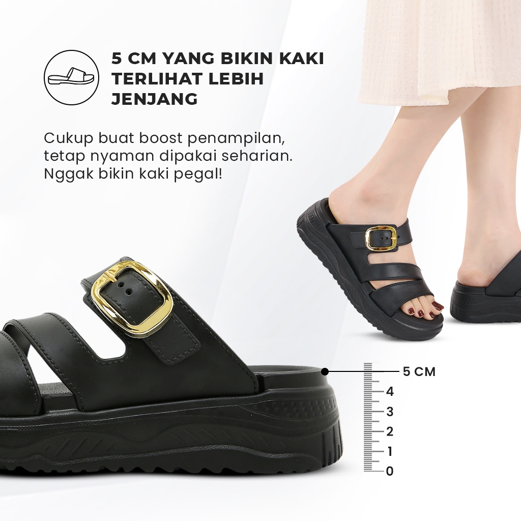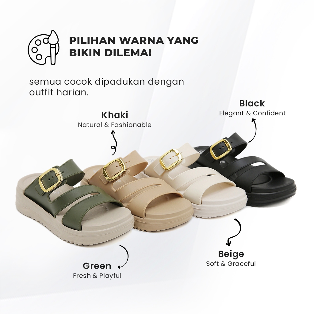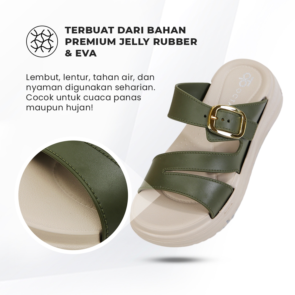 OCTAVIA Sandal Slide Slip On Eva Wanita Wedges 5cm with Belt Strap #OC-2366 FREE BOXq