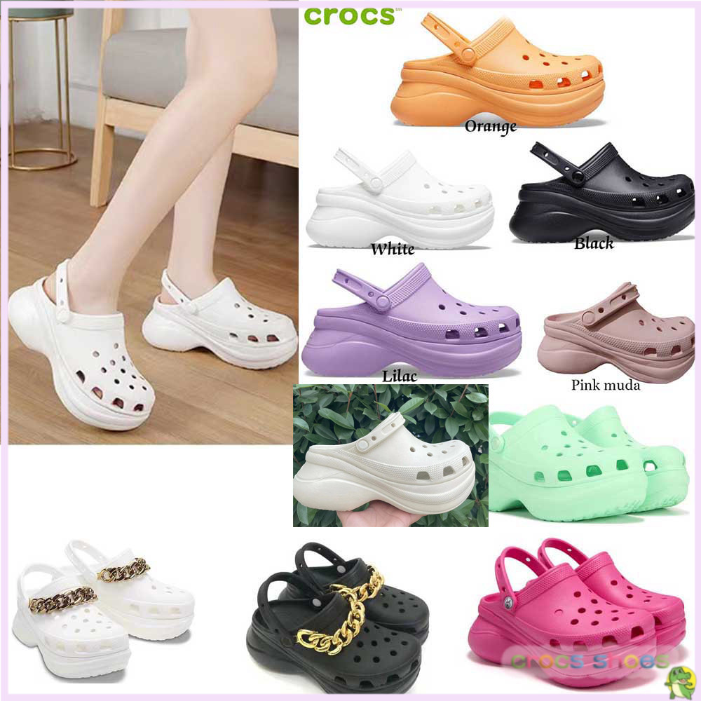 Sandal crocs priawanita Crocs Classic Bae Clog Sandal wanita platform Chain Embellished Tinggi 7-8cm 206302