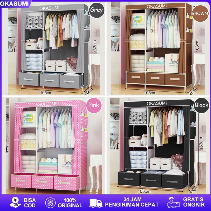 Lemari Pakaian Kain Portable Dengan Ritsleting Gantungan Anti Debu Serbaguna Hemat Tempat Lemari Jumbo Lemari Minimalis Kost