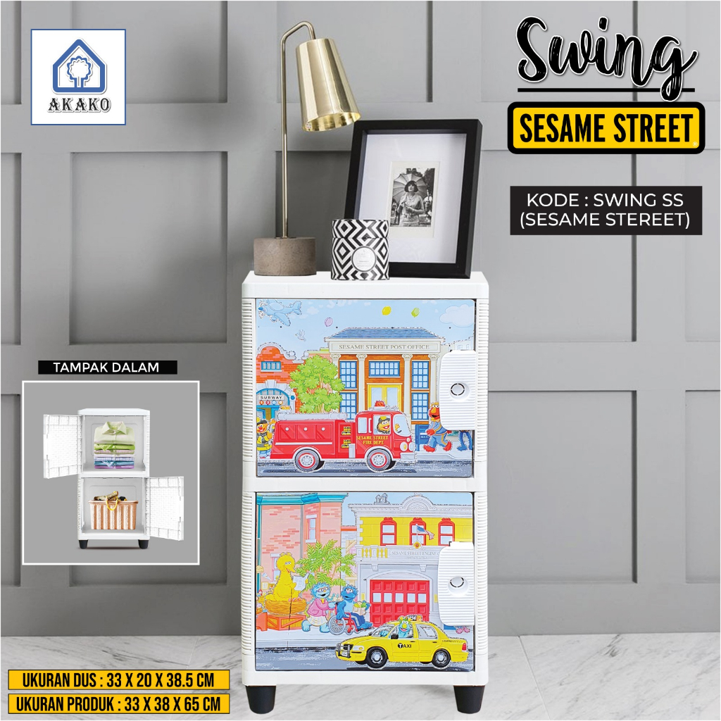 PANDA Lemari Baju Pakaian Plastik AKAKO 2 Pintu Laci Rotan MInimalis PANDA Hitam Putih Full KUNCI