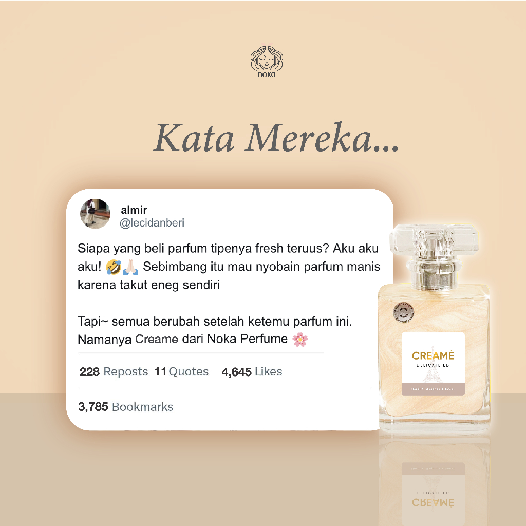 NOKA Perfume - CREAMÉ Extrait de Perfume - Parfume Wanita Vanilla, Kue, Manis, Wangi, Tahan Lama, Seharian, Kelapa, Sweet - BPOM