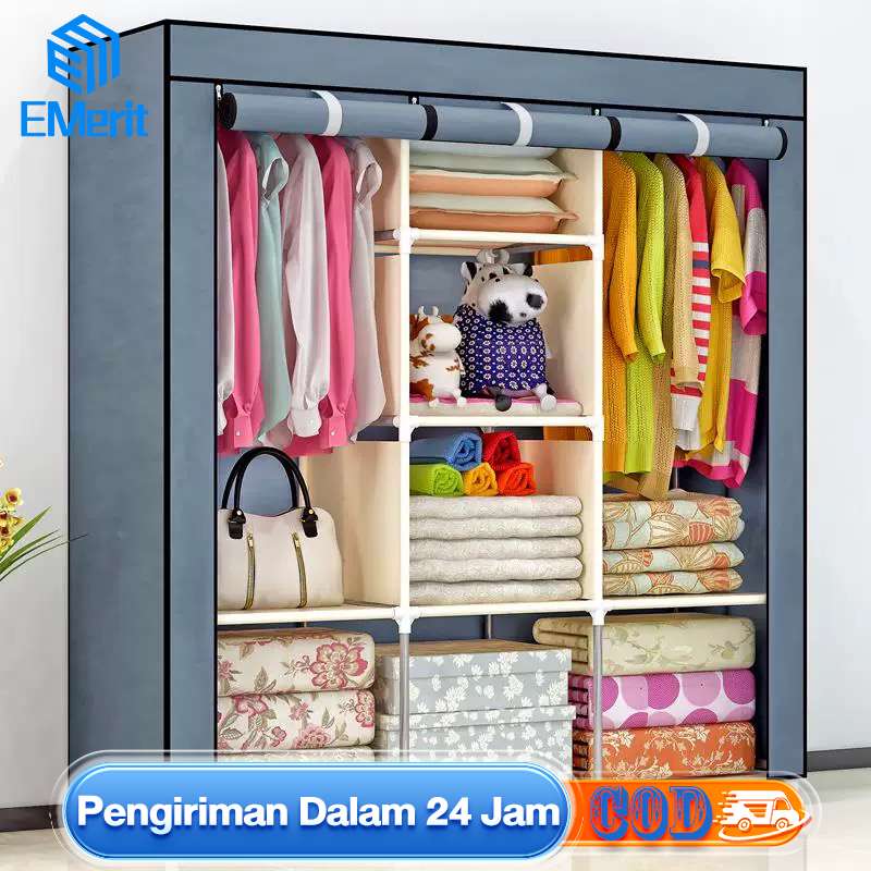 Lemari Baju Multifungsi Dan Penutup Debu Lemari Pakaian Kain Portable Lemari Pakaian 3 Sisi polos