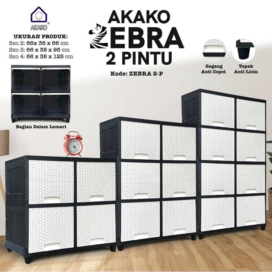 Lemari Pakaian Plastik AKAKO ZEBRA 2 Pintu 2 3 4 SUSUN LACI ROTAN PUTIH BUKA GESER MURAH KOKOH