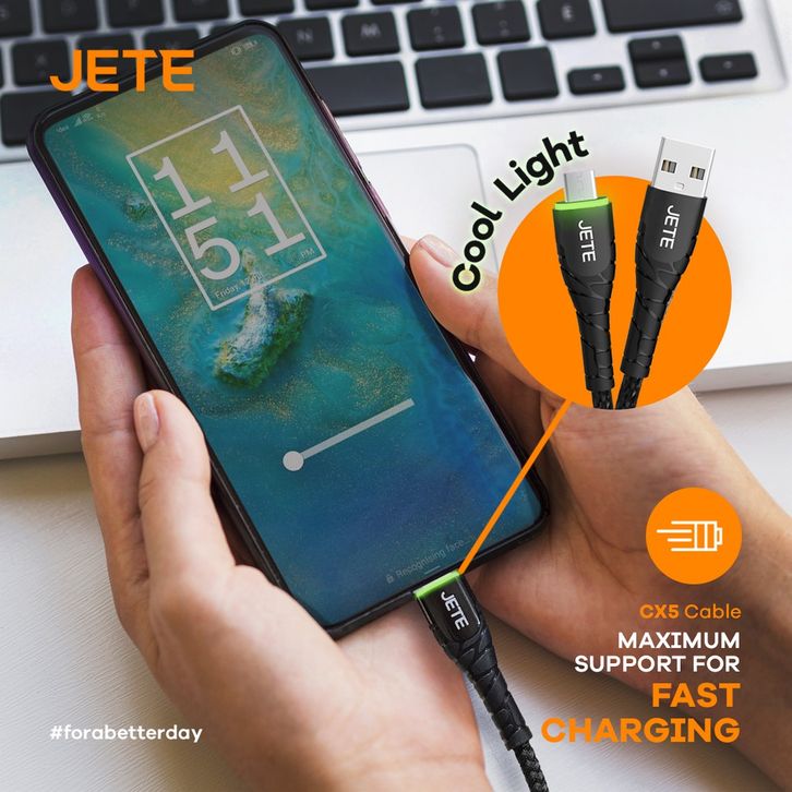 Promo Kabel USB Type C Fast Charging with LED Light JETE CX5 - Garansi 2 Th