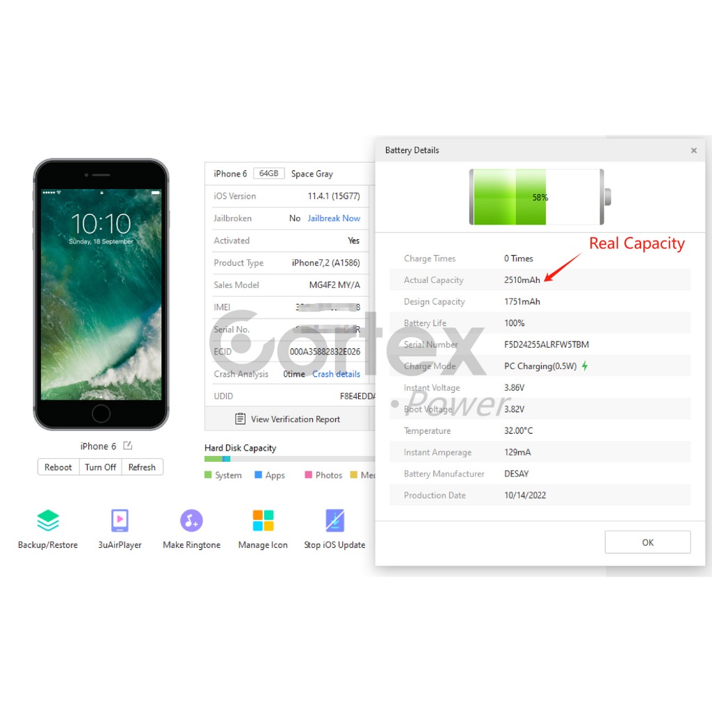 CORTEX DOUBLE POWER BATERAI IPHONE HIGH CAPACITY BATRAI BATTERY 5G 5S SE 6 6S 7 7G 8 8G PLUS IPX