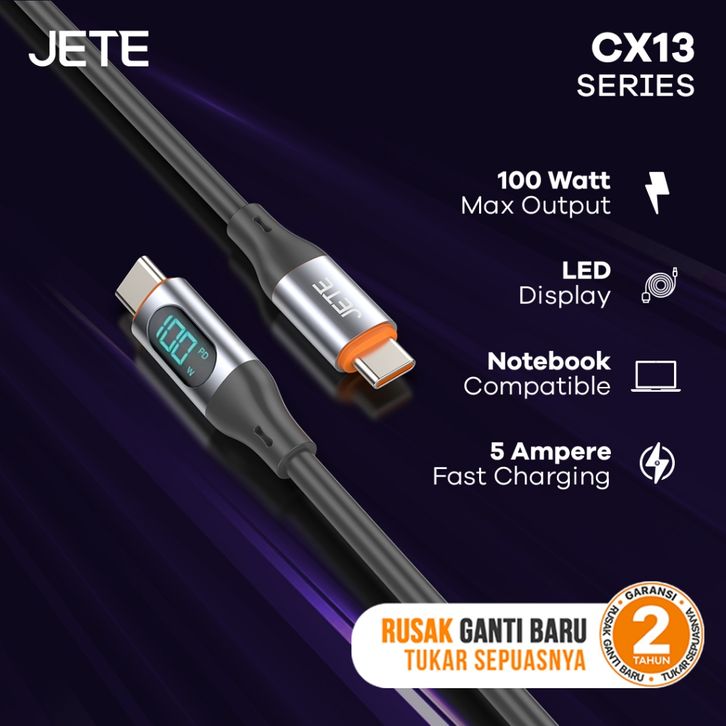 Promo Kabel Data Kabel USB Type C to Lightning Fast Charging with LED JETE CX13 - Garansi 2 Tahun