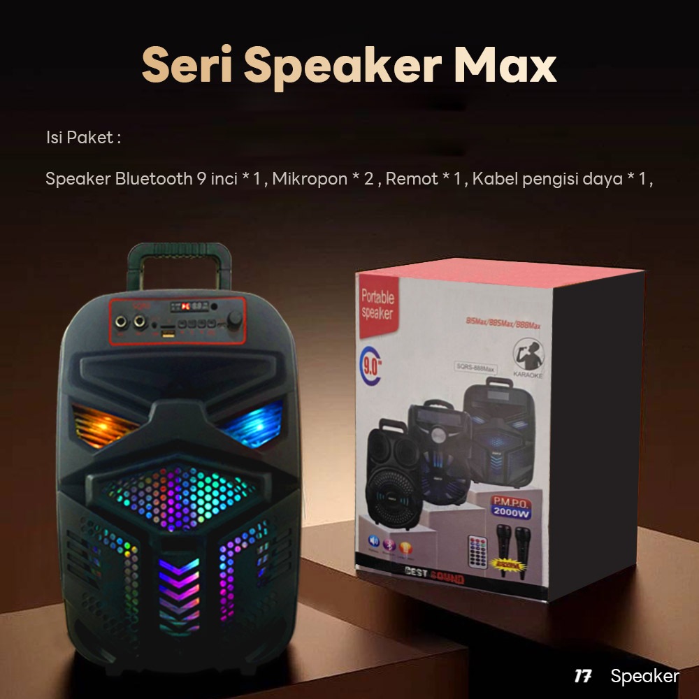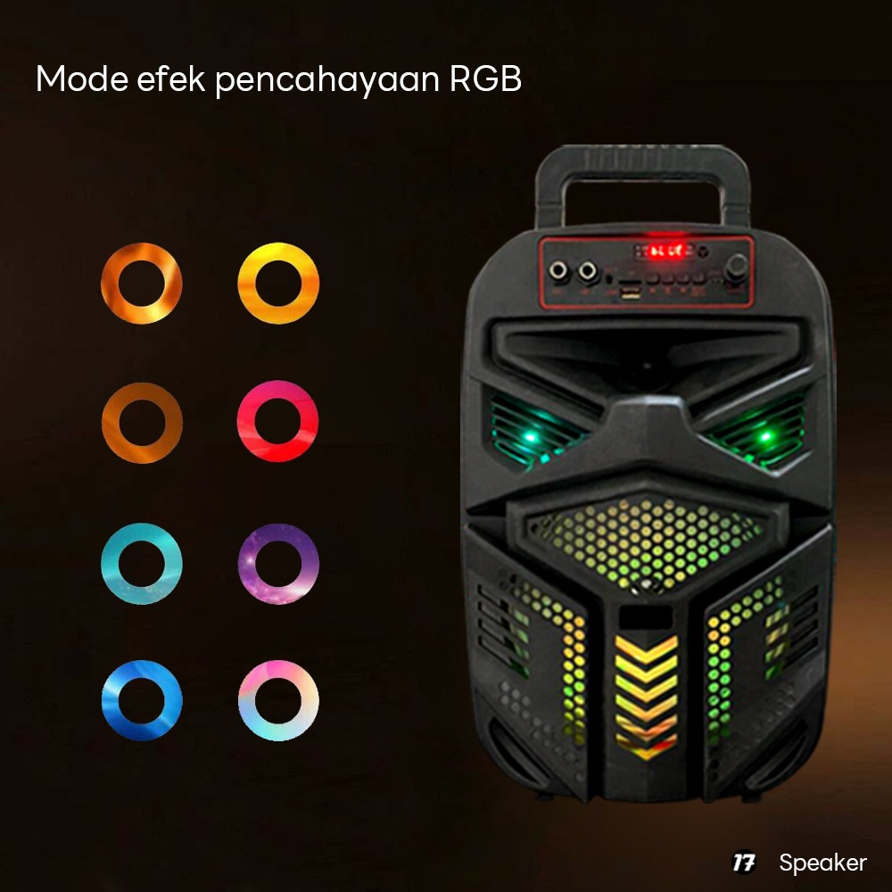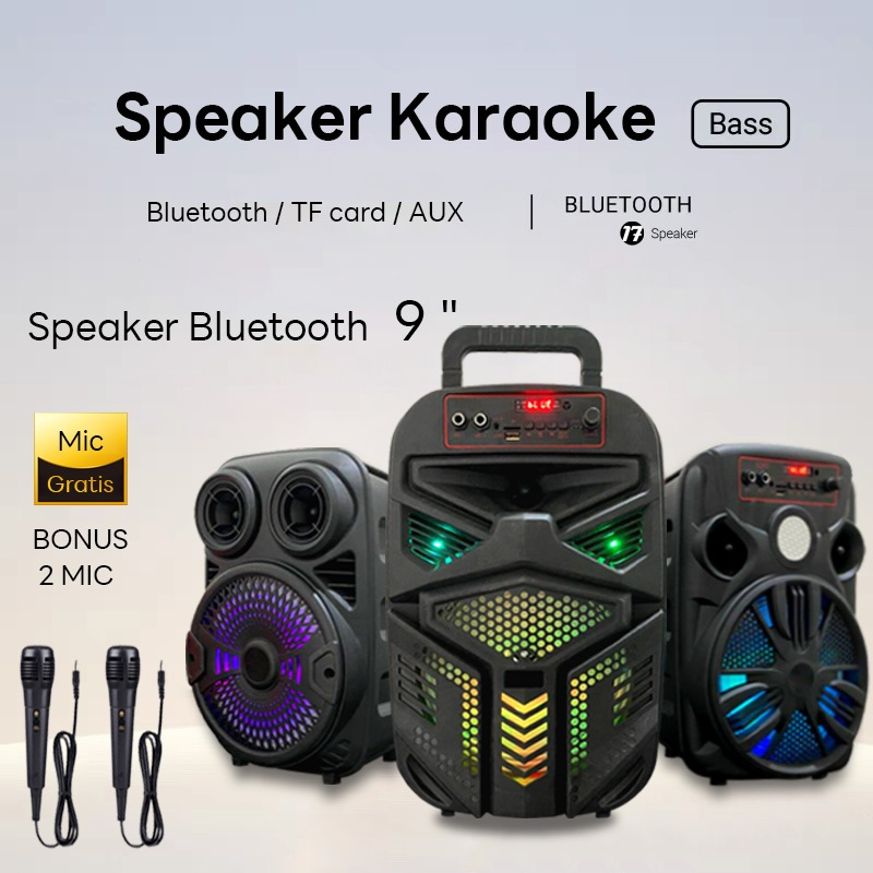 SPEAKER BLUETOOTH 9" KARAOKE PORTABLE + GRATIS 2 MIC & REMOTE / SPEAKER BLUETOOTH SUPER BASS LED RGB DUKUNGAN AUX/TF CARD