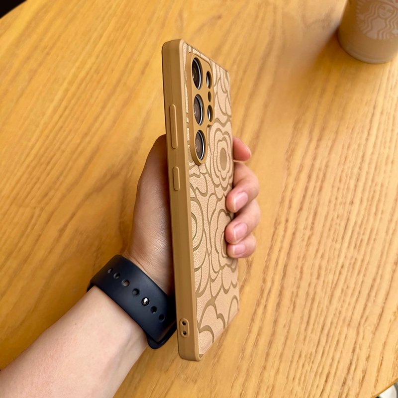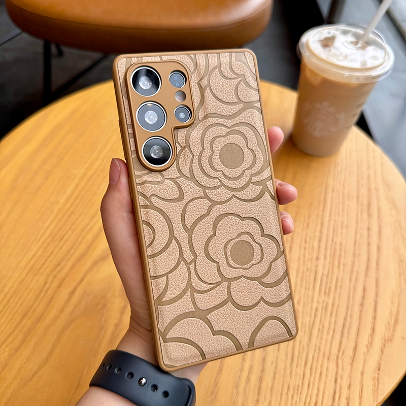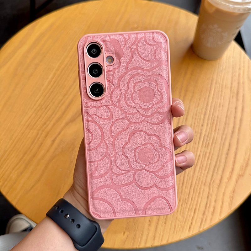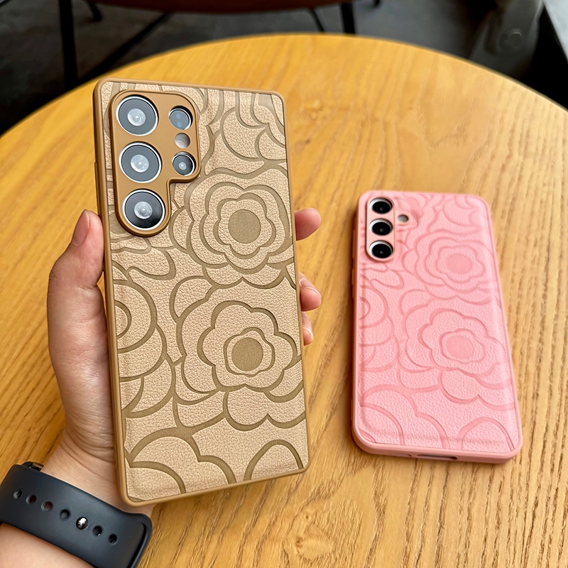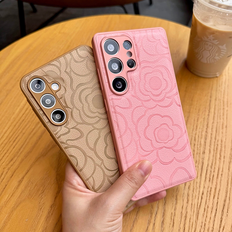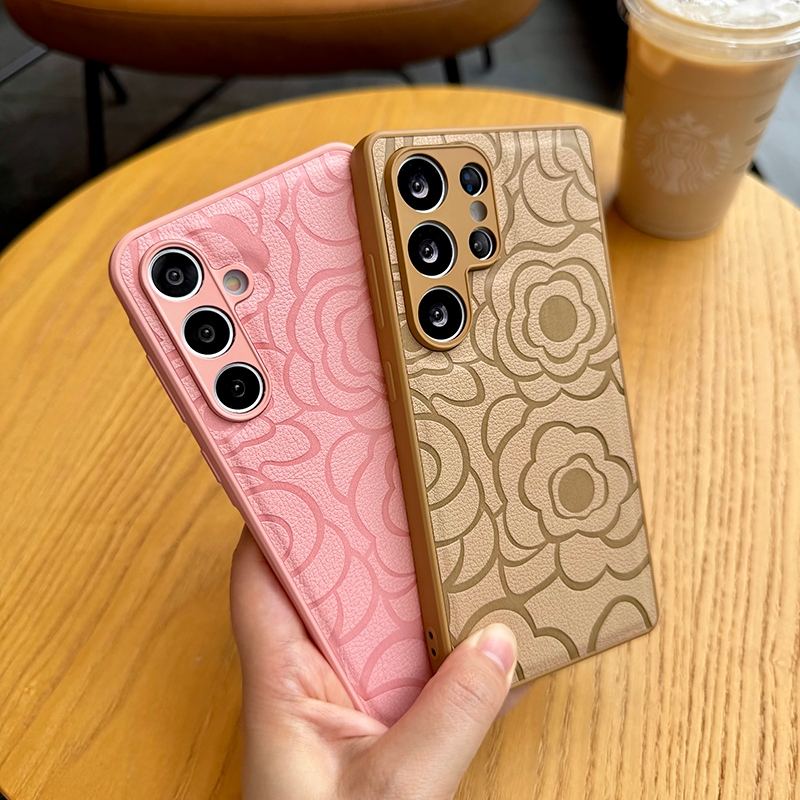 Fashion Embossed Camellia Leather Soft Silicone Shockproof Phone Case For Samsung Galaxy S25 Ultra S25+ S24 FE S23 S22 S