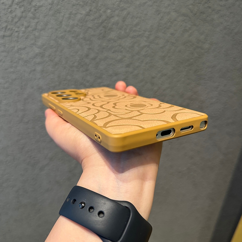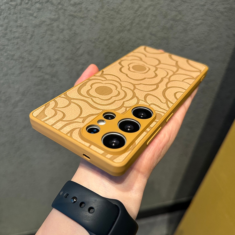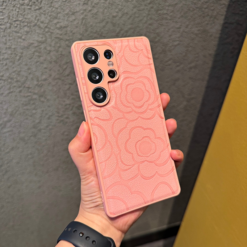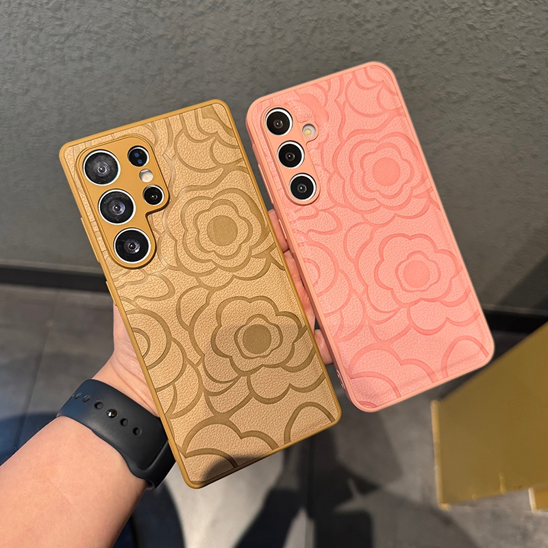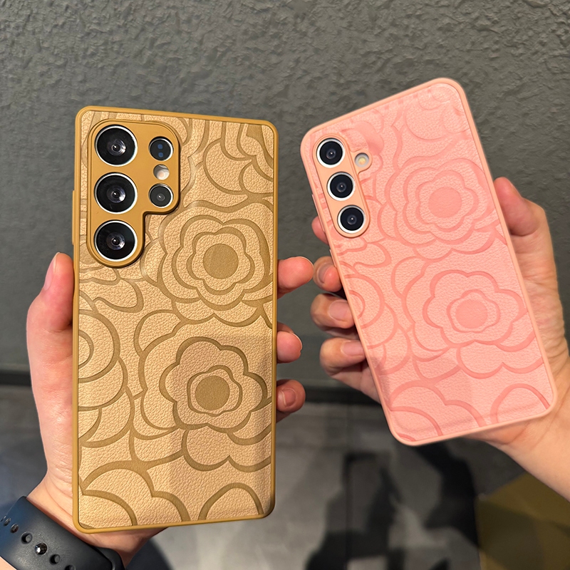 CrashStar Camellia Flower Leather Silicone Soft Shockproof Phone Case For Samsung Galaxy S25 Ultra S25+ S24 FE S23 S22 S