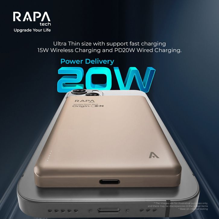 Power Bank Robot Original Fast Charging RAPAtech Powerbank Origin On 10000 mAh/ 5000 mAh Wireless Fast Charging 15 W +
