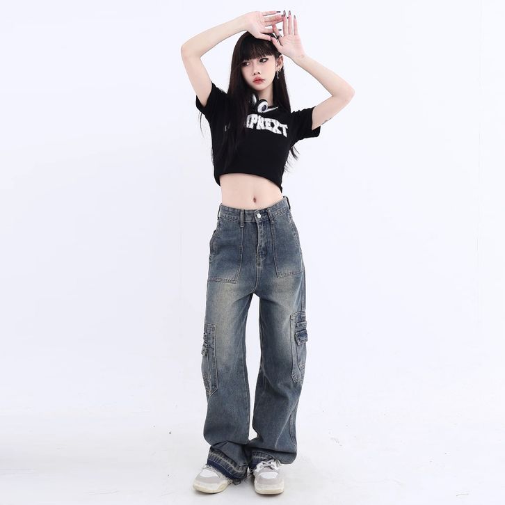 Celana Jeans Wanita Terbaru 2025 Kekinian Viral Jeans High Waist Wanita Kulot Loose Biru Retro Korea Style