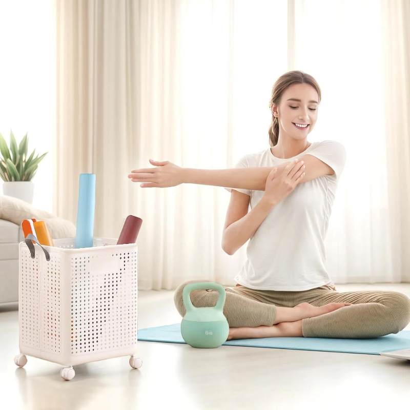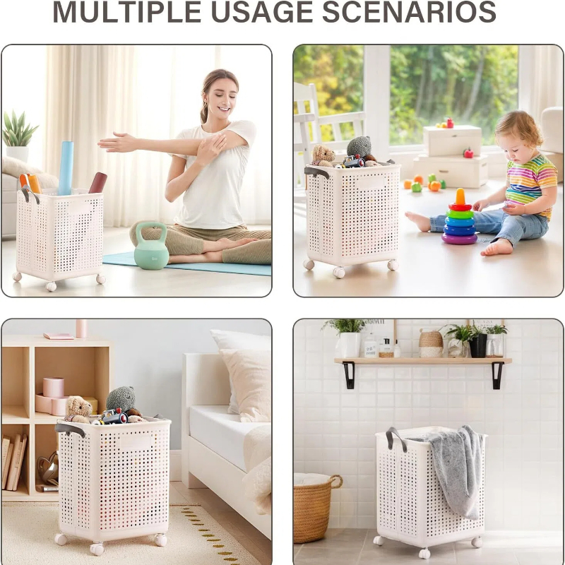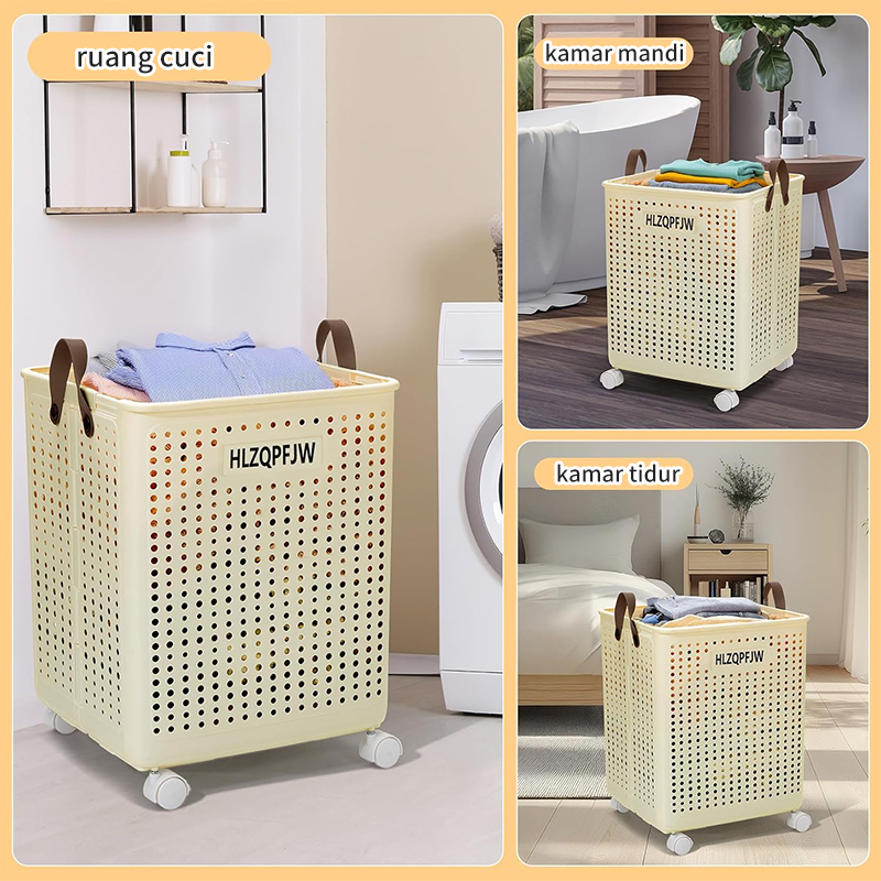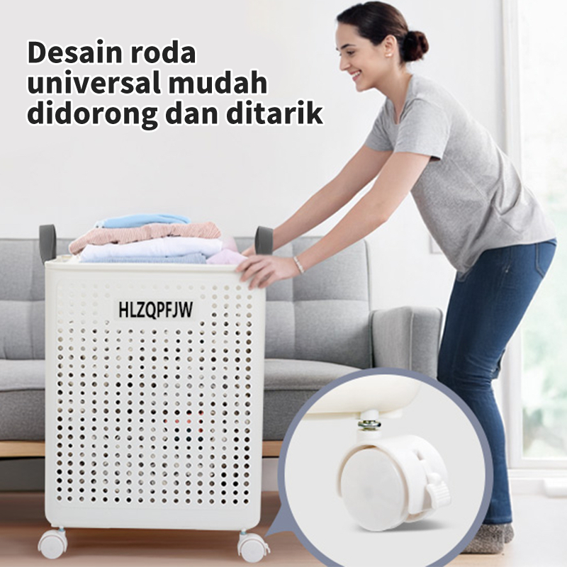 Keranjang Cucian Beroda Lipat Bernapas Asrama Keranjang Cucian Plastik Kapasitas Besar