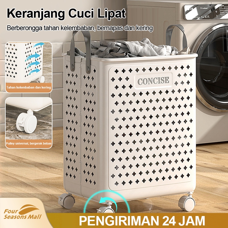 Laundry Basket Cucian Pakaian Multifungsi /Keranjang Baju Kotor Lipat Dengan Roda Keranjang Baju Lipat Keranjang Baju Ko