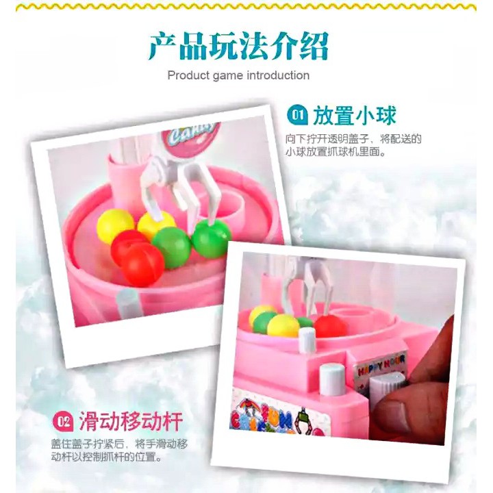 Deskripsi Produk Mainan candy crane mini pengangkut menangkap bola , dengan penutup yang bisa dibuka dan cakar yang flek