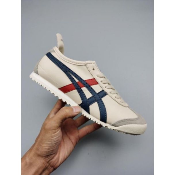 Sepatu 0nitsuka original mexico66 deluxe Cream Blue Red