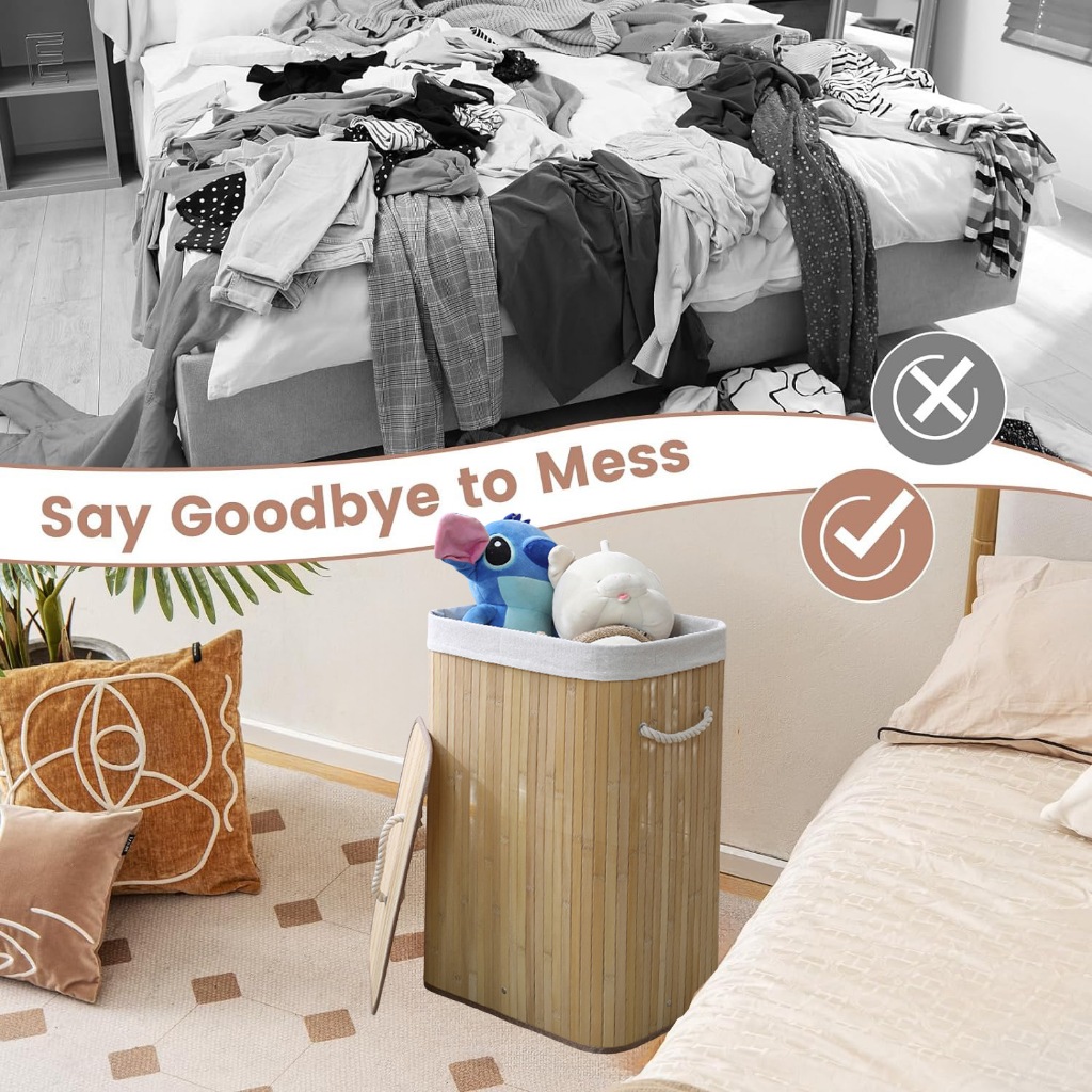【2Pcs】Keranjang Baju Kotor 72L Keranjang Laundry Rotan Kotor Bag Basket Dengan Tutup Tas Cucian Lipat Pakaian Kotor Temp