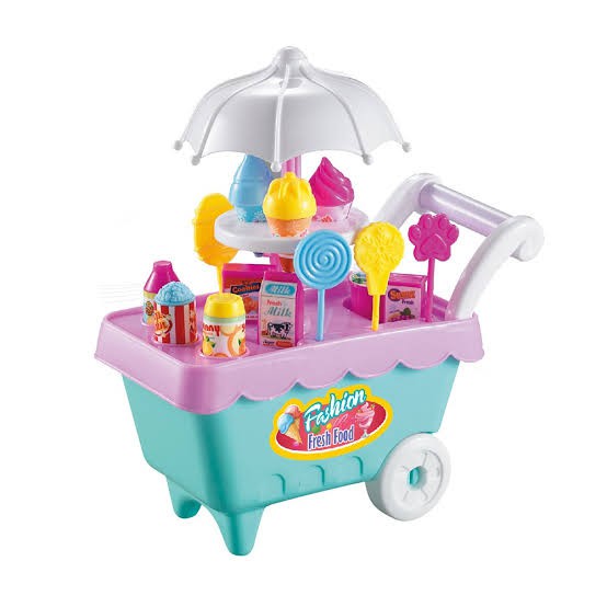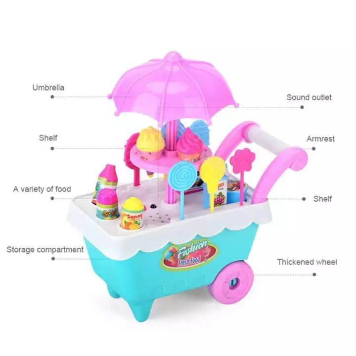 PROMO FI503 Mainan Anak Gerobak Es Krim Permen Keranjang Bonus 2 Kuda Pony Anak-anak DIY Play Set Makanan Penutup