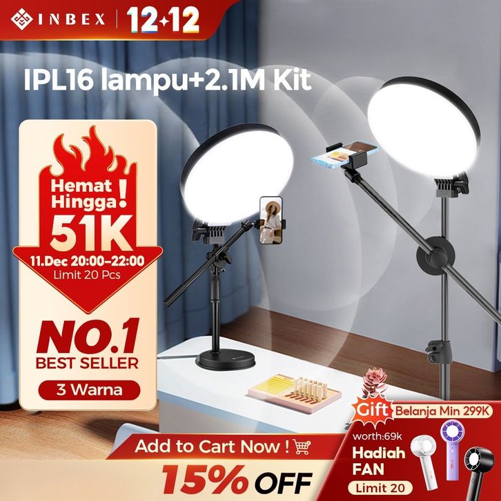 LIGHTING INBEX IPL16 RING LIGHT TRIPOD KONTEN KREATOR 12 8 INCI LAMPU 3 WARNA LAMPU VIDEO LIVE STREAMING GARANSI RESMI