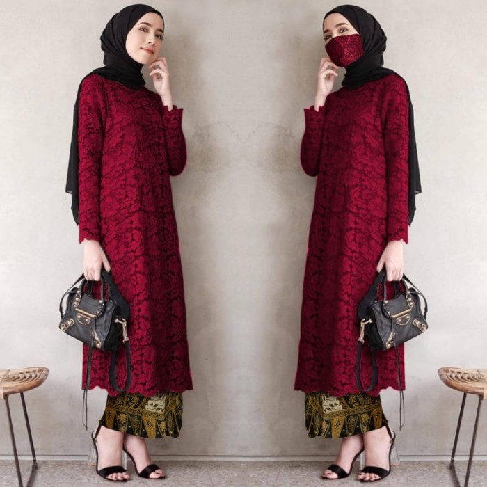 PROMO BEST SELLER ATASAN KEBAYA BRUKAT TUNIK MODERN LD 130 ATASAN KEBAYA WARNA MOCCA