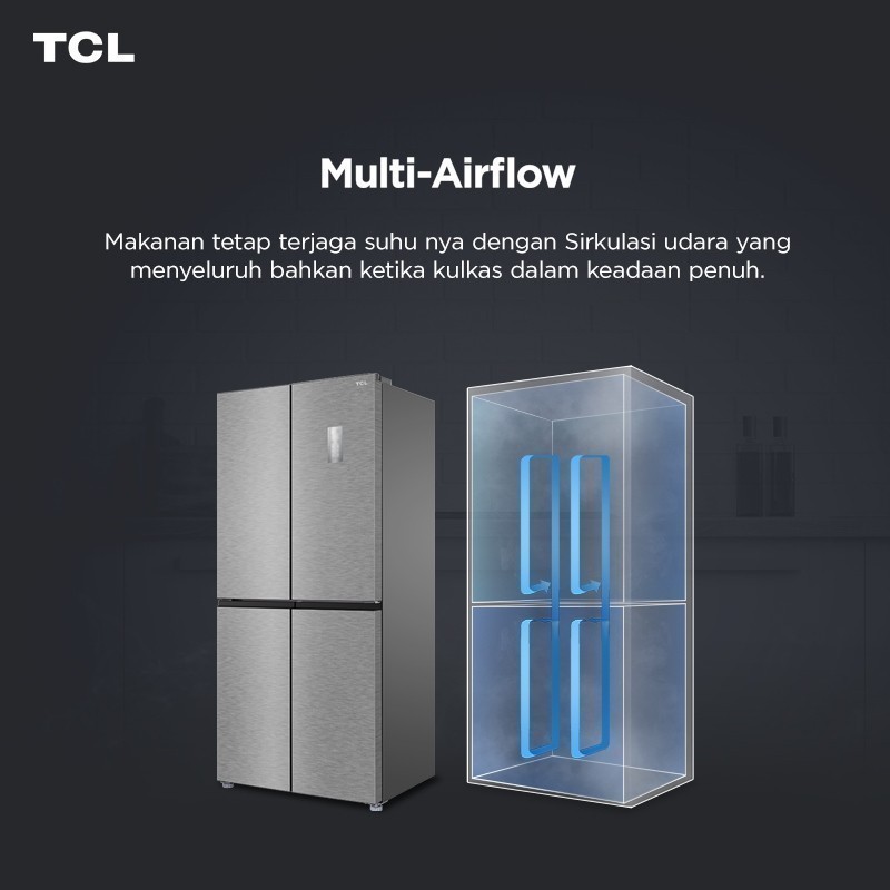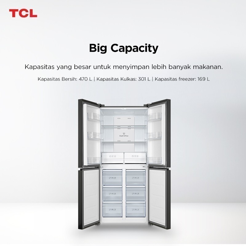 TCL Kulkas 4 Pintu - Kapasitas 541 L - P580CD - Bio Fresh - Wet and Dry Storage
