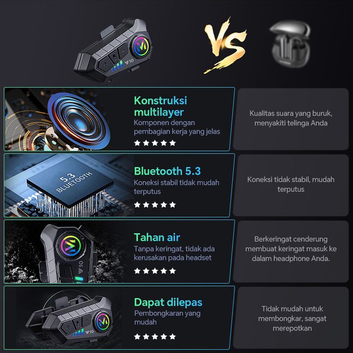 EKSKLUSIF Helm sepeda motor Bluetooth headset IPX6 tahan air pengurangan kebisingan daya tahan lama ksatria helm