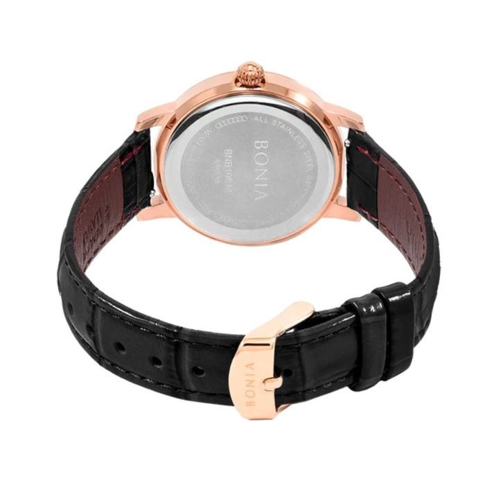 Jam Tangan Wanita Bonia Elegance Black Dial Leather Strap Analog B10814-2537S Original