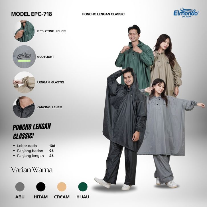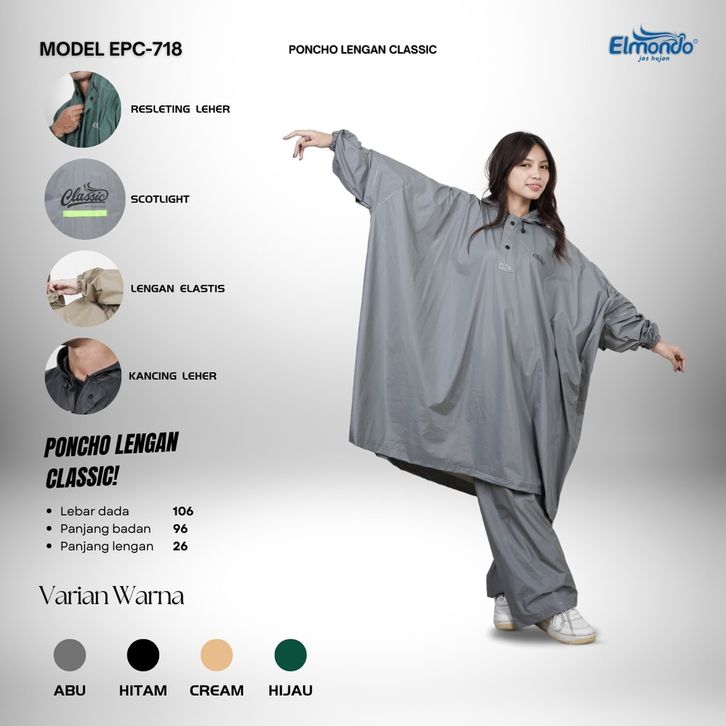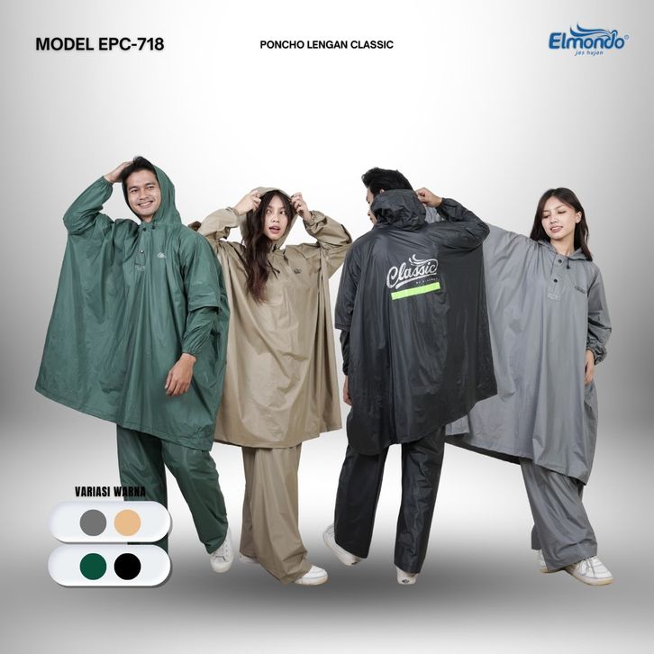 TERLARIS Jas Hujan Ponco Celana Elmondo CLASSIC 718 Mantel Setelan Poncho Lengan Dewasa Pria dan Wanita Termurah