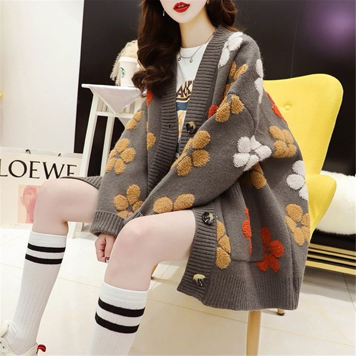 CANARA - CARDIGAN KNIT FLORA KOREA IMPORT Korean Outer/Outerwear/Cardigan/Kardigan/Kardigan Wanita/Atasan Rajut- KNIT C