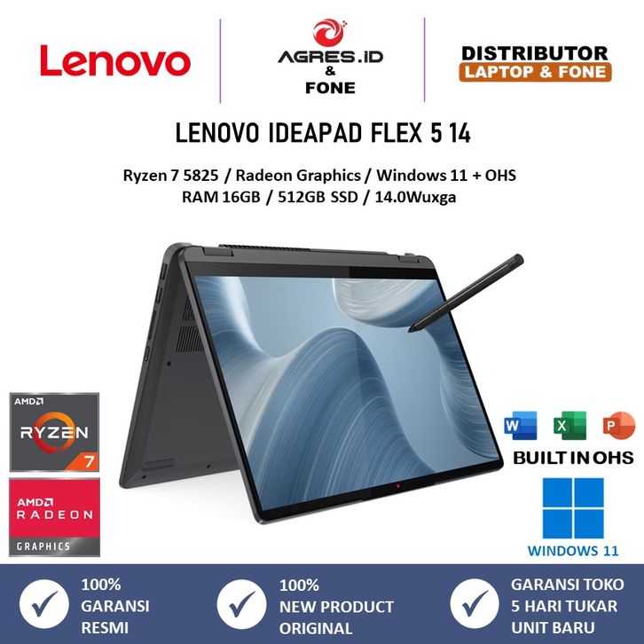 LENOVO Ideapad Flex 5 14 Touch Ryzen 7 5825 16GB 512GB SSD W11 OHS 14.0Wuxga