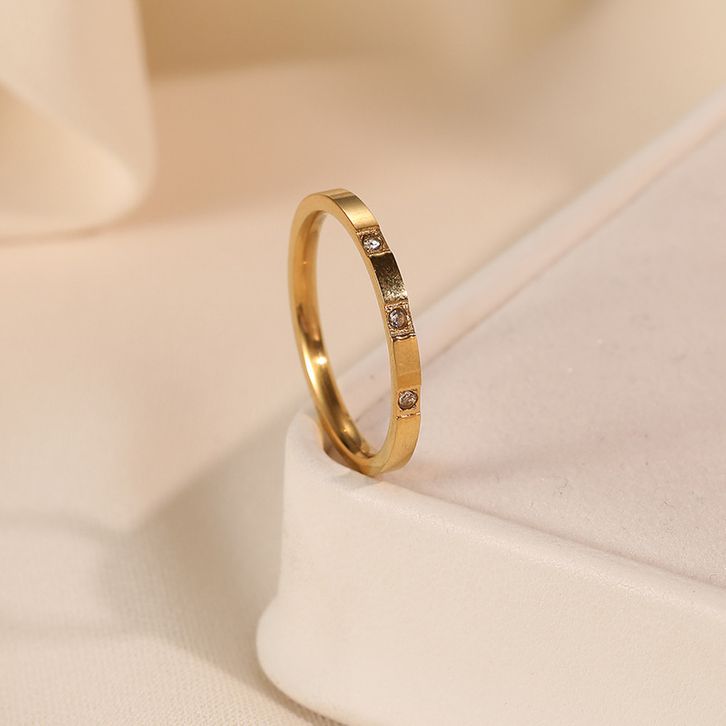 Cincin Titanium Wanita Cincin Titanium Steel Warna Aksen Berlian Imitasi Rose Gold Anti Karat Untuk Wanita Az278