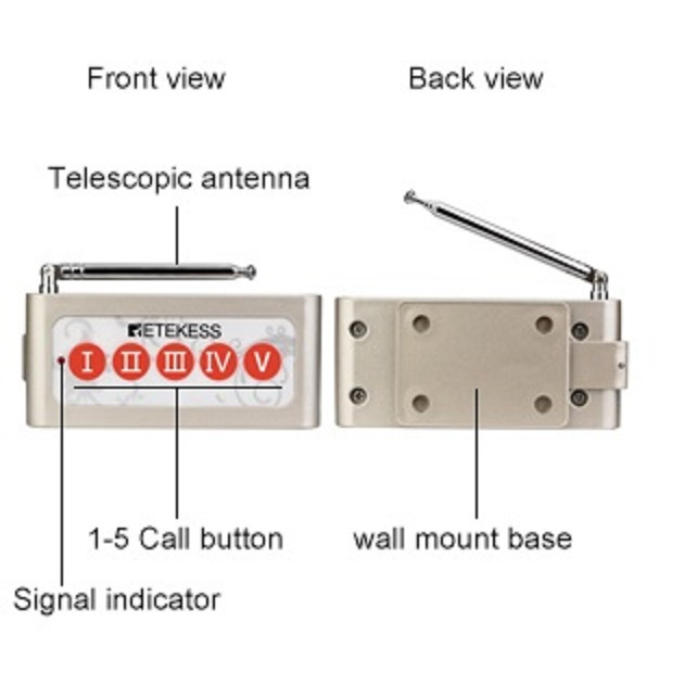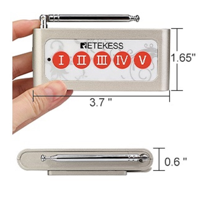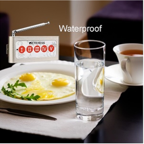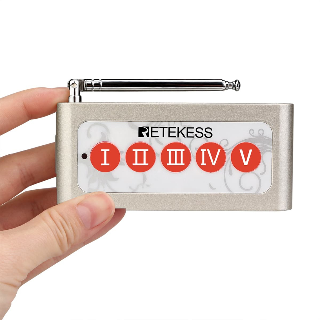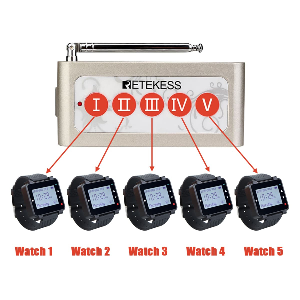 Retekess TD005 Tombol 5ch + 5pcs Jam Receiver T128, Sistem Paging Panggil Staf, Karyawan, Pelayan, Suster, Perawat, Office Boy, Tahan Air untuk Restoran, Dapur, dan Pabrik