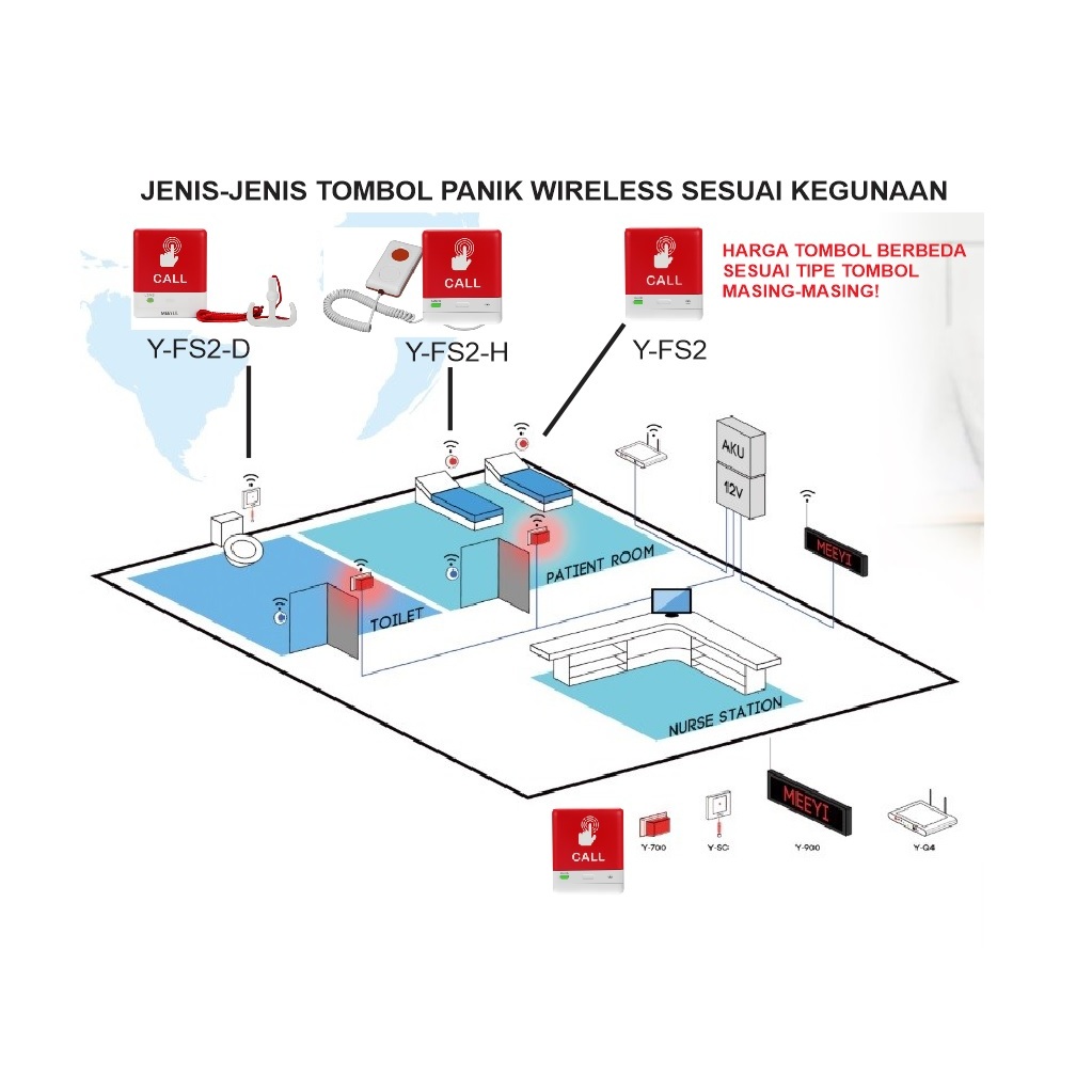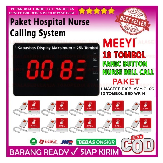 PAKET BEL PANGGIL SUSTER RUMAH SAKIT 10 TOMBOL Y-FS2-H DAN 1 DISPLAY Y-G10C MEEYI - WIRELESS NURSE CALL SYSTEM 10 BUTTON AND 1 WIRELESS DISPLAY
