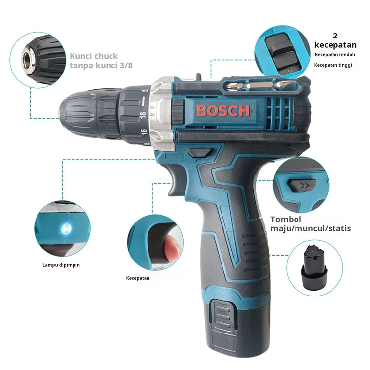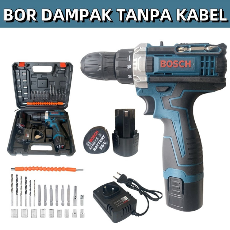 BOSCH Bor Impact Bor Baterai Cordless 96volt 2 Baterai Mesin Bor Beton Besi Kayu Terkuat Kunci Benturan Untuk Baut Otomo