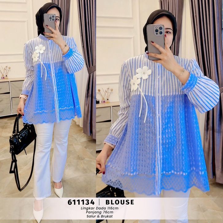 (TERLARIS)EXTU HERITAGE - Tasya Blouse Salur Kombinasi Brukat Elegan Busui Friendly Best Seller - 611134