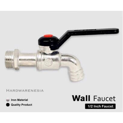 Kran Air Bola Besi Gagang Hitam 1/2" l Keran Tembok High Quality