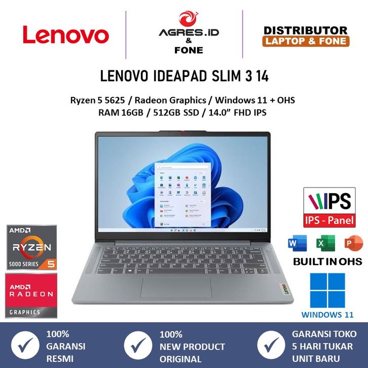 LENOVO Ideapad Slim 3 14 Ryzen 5 5625 Ram 16GB 512GB SSD W11+OHS 14.0FHD IPS