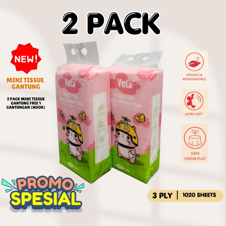 2 PAK] 3 PLY, 1020 SHEETS TISSUE GANTUNG VELA Tissue Elegan Tissue Minyak Tissue Serbaguna Tissue Mobil Tisu Wajah Ibu D